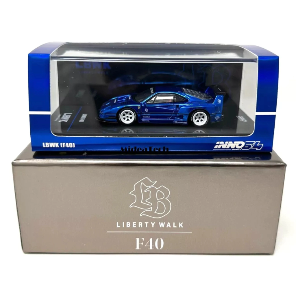 A lendária Ferrari F40 ganha uma nova identidade com a customização ousada da Liberty Walk! Esta miniatura INNO64 1:64 LBWK F40 Chrome Black combina agressividade e sofisticação em uma pintura preta cromada e um bodykit widebody.