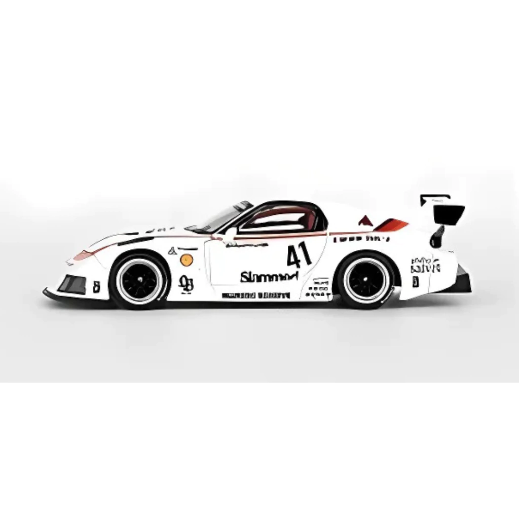 Mini GT 1:64 Mazda RX-7 LB-Super Silhouette #41 Numero Reserve White! Este modelo em escala perfeita é um tributo ao icônico Mazda RX-7, apresentando um design que mescla performance e estilo. Com detalhes minuciosos, essa miniatura é ideal para colecionadores e entusiastas de automóveis.
